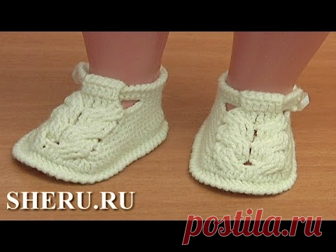 Ботиночки пинетки крючком Урок 54 часть 1 из 3 Babyschuhe häkeln