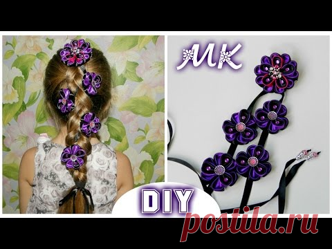 DIY: Лента в косу Канзаши / Ribbon in braid Kanzashi / Flor de fita