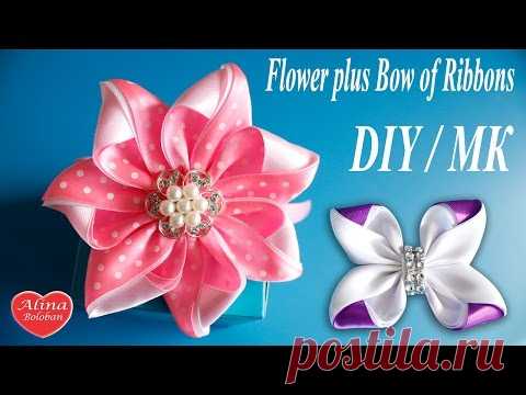Цветок плюс Бант из Лент. Два МК в Одном / Flower plus Bow of Ribbons. DIY