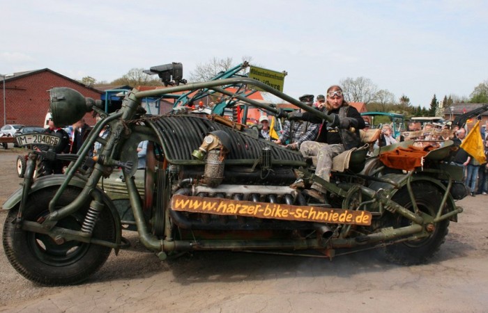 Самый большой в мире мотоцикл с двигателем от советского танка | Чёрт побери Panzerbike - самый тяжелый в мире мотоцикл с двигателем от танка. На выставке в Германии представлен самый большой в мире мотоцикл. Он сделан в стиле милитари, а его силовая установка - двигатель от советского танка Т-55. А недавно создатели байка рассказали неожиданный секрет успеха. Немецкий самодельный мотоцикл-танк. Энтузиасты из немецкой деревни Зилла создали самый большой в мире мотоцикл. ...