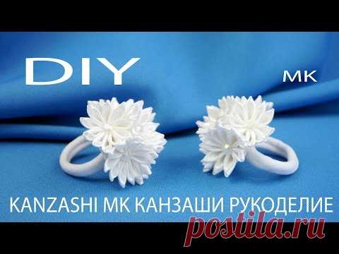 DIY: Белоснежные мини-резиночки Канзаши на косички / White mini clip Kanzashi in pigtails