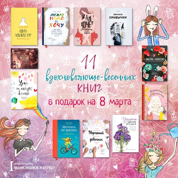 Подборка к 8 марта + Розыгрыш! Выбрали лучшие книги в подарок к 8 марта, чтобы порадовать ваших женщин. Все книги подборки (и еще 1694 изданий) до праздника доступны со скидкой 20%: 1. "Книга ленивого гуру" ( 2. "Между надо и хочу" ( 3. "Как хочет женщина" ( 4. "Меняем привычки" ( 5. "От листка к лепестку" ( 6. "Морщинки на бабулином лице" ( 7. "Портреты цветов от а до я" ( 8. "Творческий девичник" ( 9.…
