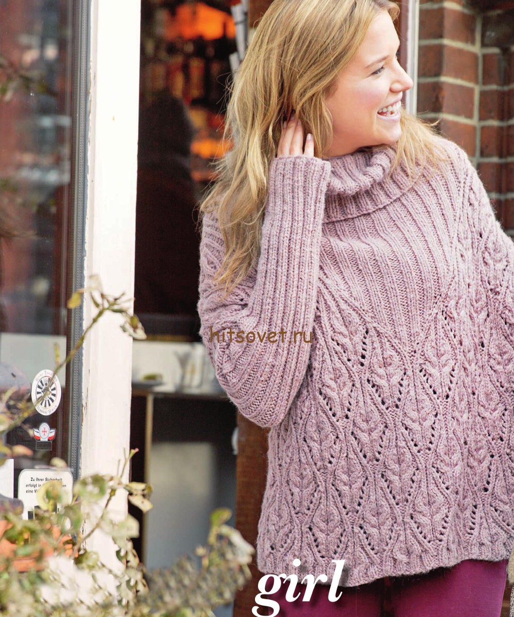 Свободный свитер спицами схема - Хитсовет Свободный свитер спицами схема. Новинка модного свободного свитера для женщин с бесплатным описанием и схемами вязания. Вам потребуется: 750 (1000) грамм сиреневой пряжи Schachenmayr CORDELO, состоящей из 68% полиакрила, 18% шерсти, 9% альпака, 5% полиамида, длиной нити 90 метров в 50 граммах; спицы № 6; круговые спицы № 6 длиной 60 см; вспомогательная спица.