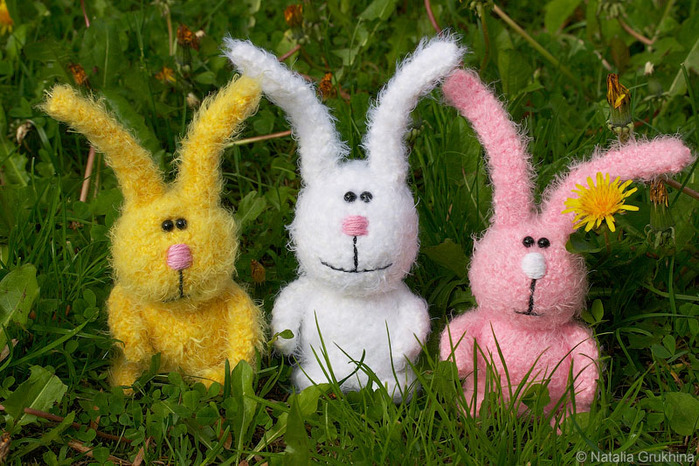 Вязаные пасхальные зайчики и коты по мотивам игрушек Тани Оробец.