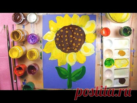 Как нарисовать подсолнух - урок рисования для детей 2,5-4 лет.Дети рисуют подсолнух поэтапно