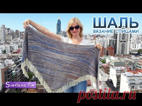 ШАЛЬ "Пляж" с бахромой. Вязание спицами # 515
