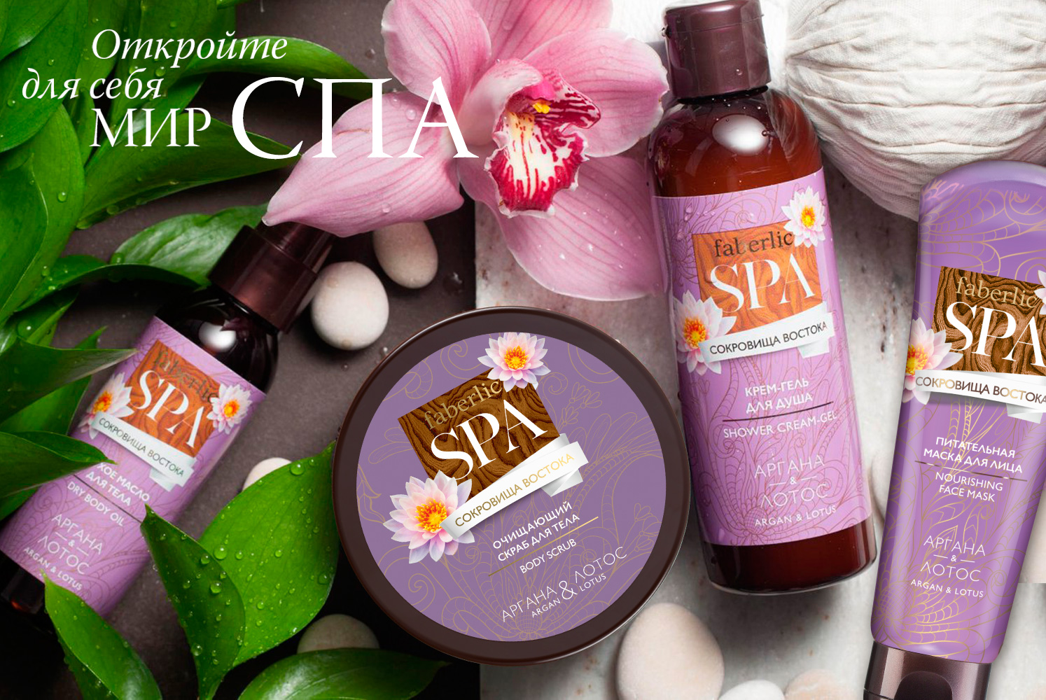 В новой линии SPA «Сокровища Востока» – средства для роскошного ухода за собой, для полного расслабления и абсолютной свободы чувств! В ней питательное масло арганы и чувственный аромат лотоса.