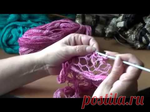 Шарфик из ленточной пряжи крючком - YouTube