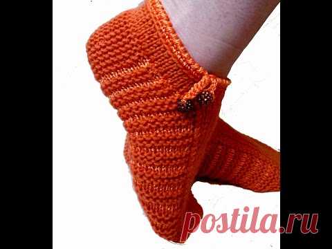 Тапочки следки спицами ПОЛОСКИ //Василиса