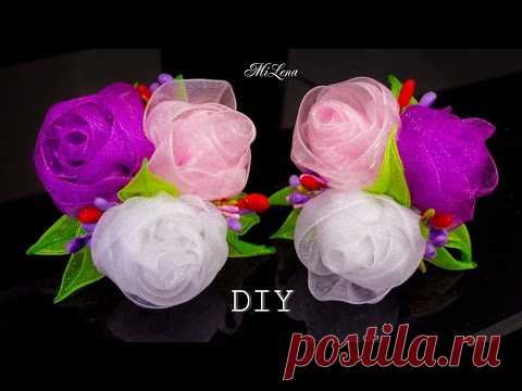 РЕЗИНКИ С РОЗАМИ ИЗ ОРГАНЗЫ, МК / DIY Organza Roses