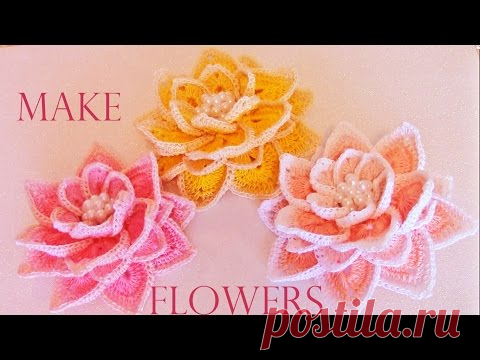 Como tejer fácil rápido flores hermosas en una sola tira - How to make knitting crochet