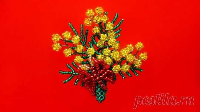 Ветка мимозы из бисера Как сделать мимозу из бисера, красивая веточка мимозы своими руками, цветок мимоза на 8 марта мастер класс, как сплести букет с мимозой видео для начинающих ...