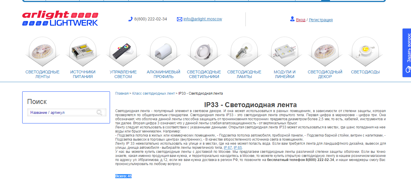 IP33 - светодиодная лента со степенью защиты IP33 купить в магазине Arlight с доставкой по Москве и России.