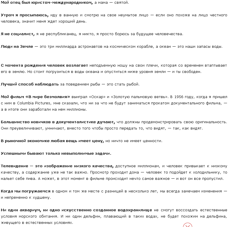 Жак-Ив Кусто. Правила жизни.