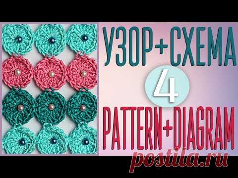 Вяжем узор крючком по схеме №4. Pattern crochet + diagram (scheme) №4