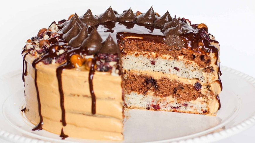 КОРОЛЕВСКИЙ ТОРТ Ингредиенты Для Коржа: 3 больших яйца 1 1/2 чашки (367g) сметана 1 1/2 чашки (300 г) белый сахар-песок 1 чайная ложка (5 мл) ванильного экстракта 1 1/2 чайные ложки (6 г) порошка выпечки 1 1/2 чашки (187г) муки общего назначения 1/2 стакана (90г) темно-шоколадной стружкой, растопленным 1/2 чашки (60г) мелко нарезанной сушеной клюквой 3 столовые ложки (26 г), семена мака 1/2 чашки (70 г) мелко нарезанного фундука Для Крема: 226 г сливочного сыра, размягчен...