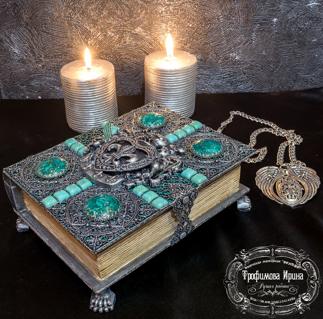 старинный фолиант с элементами геральдики , про лилии можно почитать здесь http://www.botanichka.ru/blog/2010/07/21/lily-3/ (трансфер декупажной карты в льняную ткань и обивка оной "внутрянки" фолианта, отливки в молдах, самодельные кабошоны с имитацией камня, имитация черненого серебра, чипборды, фурнитура)