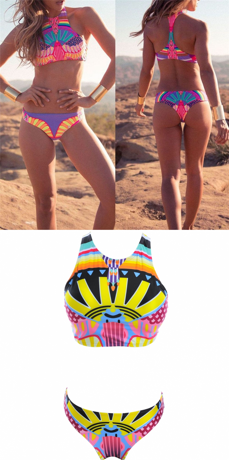 Купальник раздельный в яркий графический узор с топом и плавками-бразилиана - Купальники / СЮРПРАЙЗ