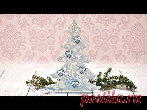 Decoupage krok po kroku - choinka z pastą strukturalną i śniegową