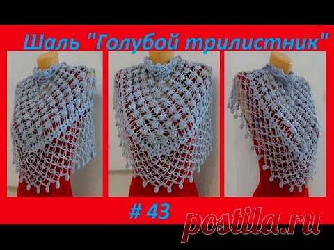 Шаль "Голубой трилистник " # 43 how to knit crochet shawl Шаль "Голубой трилистник" крючком , мастер -класс по вязанию очень красивой и нежной шали ,соломоновыми петлями и пышными столбиками , по-шаговое обучение вя...