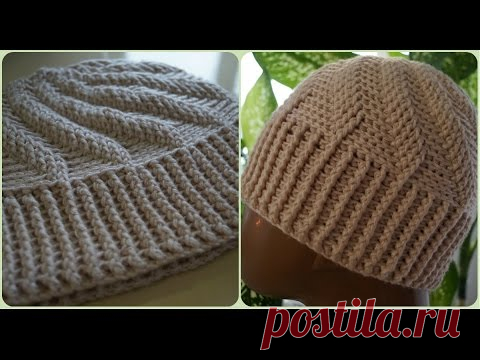 Вязаная шапочка. Выпуклые и вогнутые столбики.