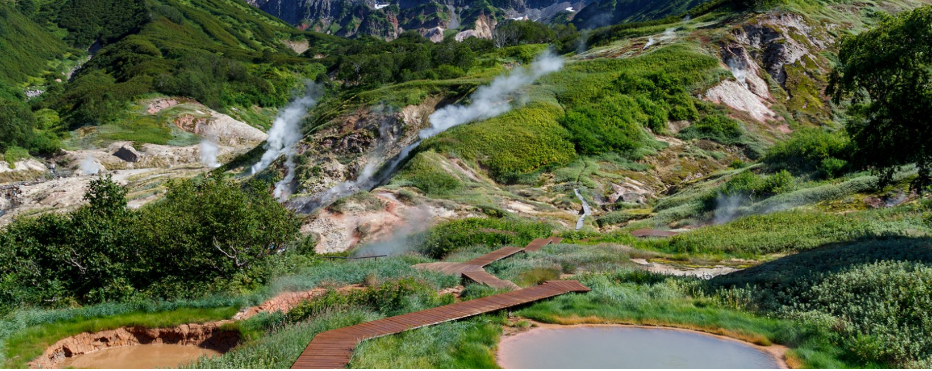 Заповедная Россия. Отдельный пункт путешествия — Долина гейзеров. Она похожа на каньон с протекающей по его дну рекой Гейзерная. Хотя бы раз видевшие это своими глазами уверены: гейзеров, равных тем, что расположены в долине, по зрелищности и массовости, найти невозможно ни в одном другом уголке земли.