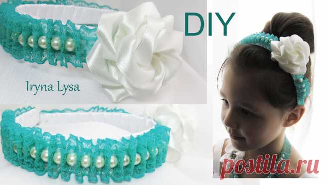 Обруч з бусинами, мереживом та квіткою/Ободок с бусинами, кружевом и цветком Материалы для ободка: - кружево 4 см — 90 см . **Кружево на aliexpress http://ali.pub/16i5mj - бусины 8 мм — 24 шт - ободок, ширина 2-3 см — 38.5 см - атласн...