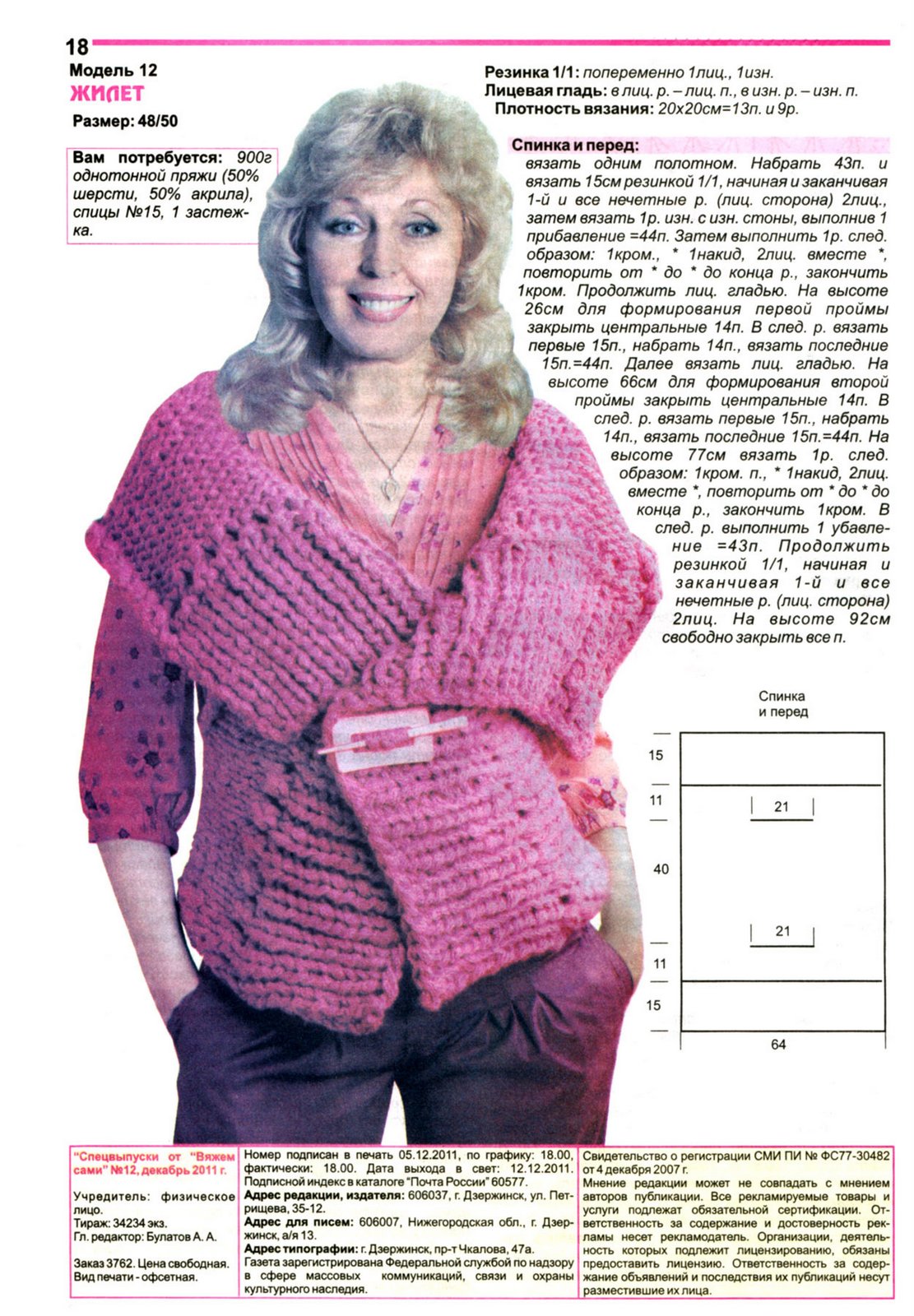 жилет из толстой пряжи спицами