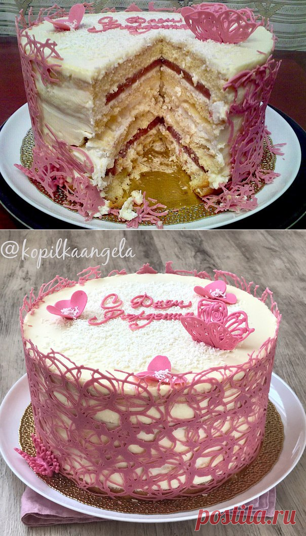 Наивкуснейший торт с клубничной прослойкой, меренгой и кремом