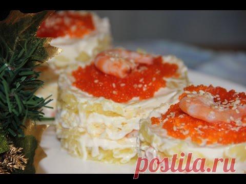 Салат из креветок с тертым картофелем и яйцом "Нежный"