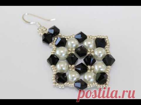 Pearls and Crystals Earrings. Серьги из бисера жемчуга и кристаллов