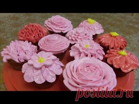 Украшение кремом КЕКСОВ насадкой РОЗА мастер класс по украшению кексов кремом