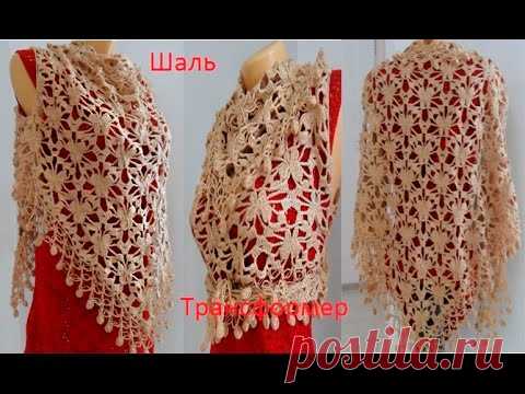 Шаль - трансформер "Золотые бабочки".( шаль # 45 )How to Crochet A Shawl