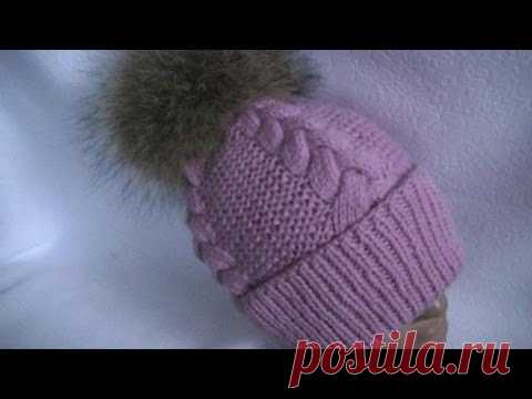 Вязание шапки узором платочная вязка и коса с 15 петель.