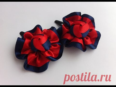 Украшение на заколку Канзаши / Красно-синий цветочек