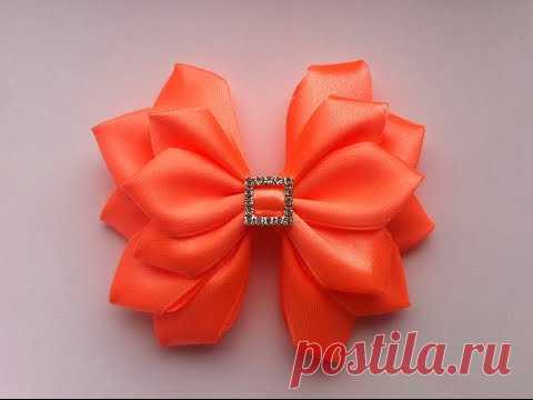 Украшение на заколку Канзаши / Ярко - персиковый бантик