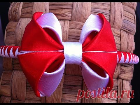 Украшение на ободок Канзаши / Красно-белый бант