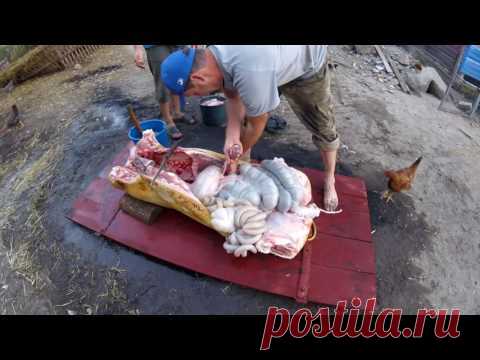 Разделка свиньи/Рецепт настоящей свежины из свинины! Подробное видео. Сельская жизнь. 18+