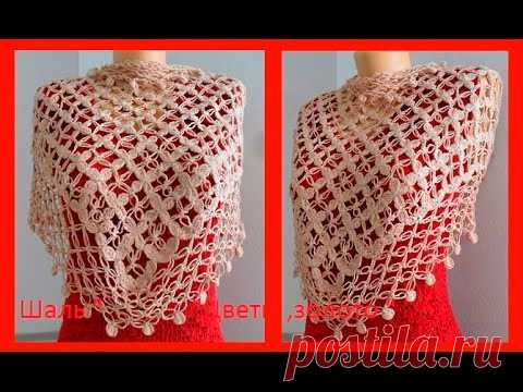 Шаль "Цветы, золото" .How to Crochet A Shawl ( шаль # 46 )