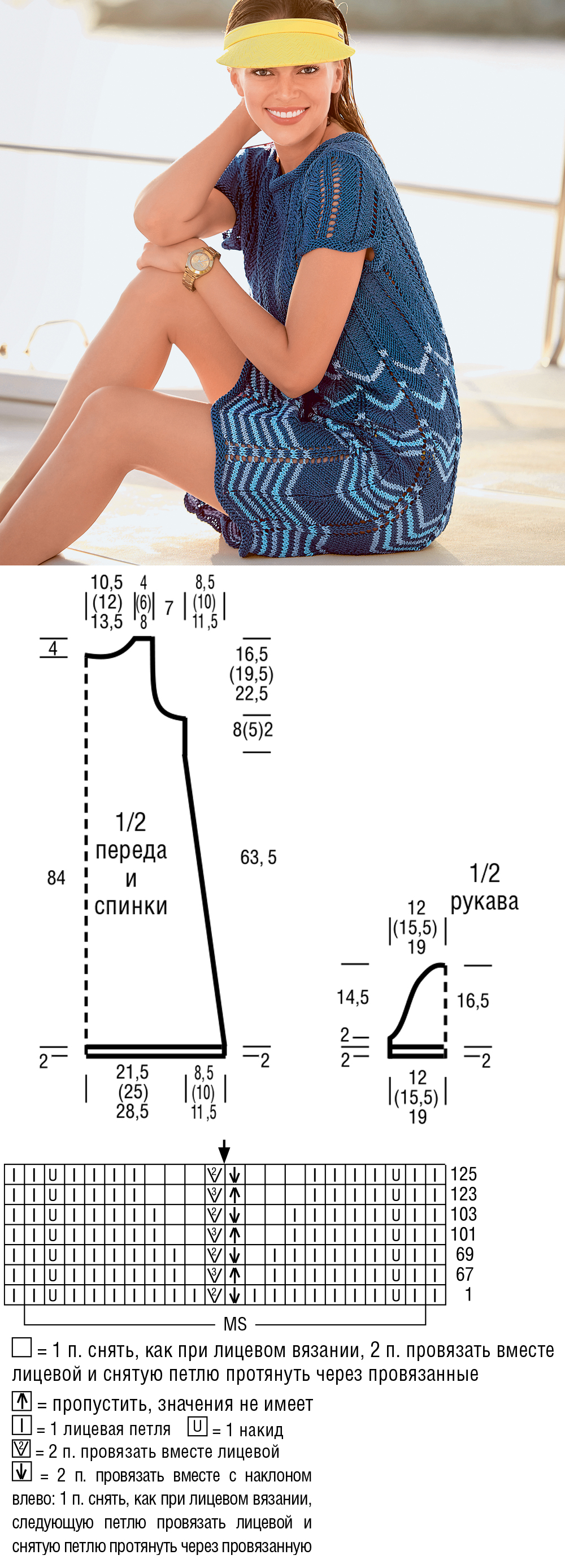 Платье в полоску с зигзагообразным узором - схема вязания спицами. Вяжем Платья на Verena.ru