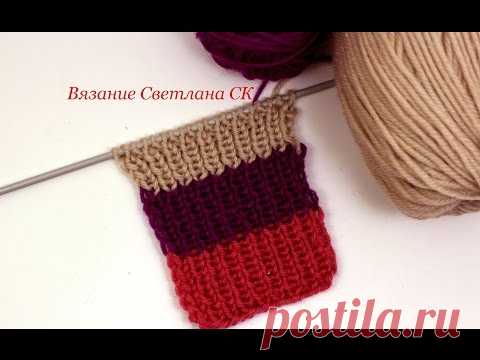 Незаметный переход на пряжу другого цвета при вязании резинки спицами - YouTube