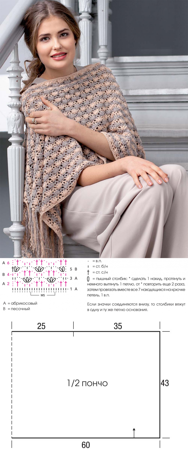 Двухцветное пончо - схема вязания крючком. Вяжем Пончо на Verena.ru