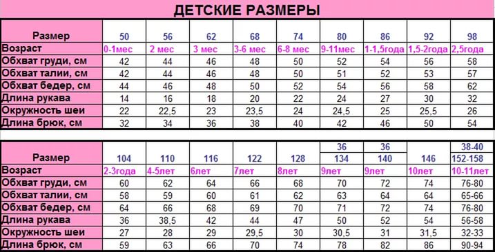 таблица размеров о детской одежды: 18 тыс изображений найдено в Яндекс.Картинках