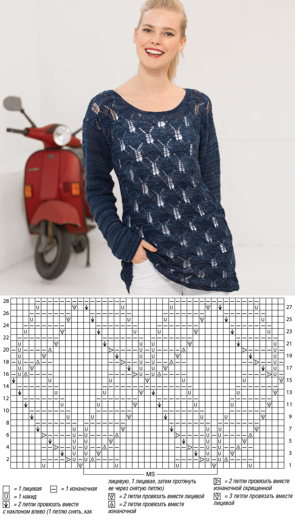 Синий джемпер с ажурным узором - схема вязания спицами. Вяжем Джемперы на Verena.ru