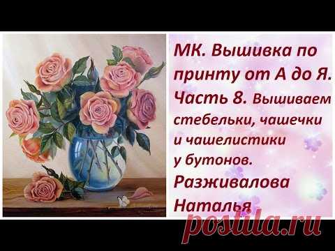 МК. Вышивка по принту от А до Я. Часть 8. Бутоны. Вышиваем стебельки , чашечки и чашелистики.