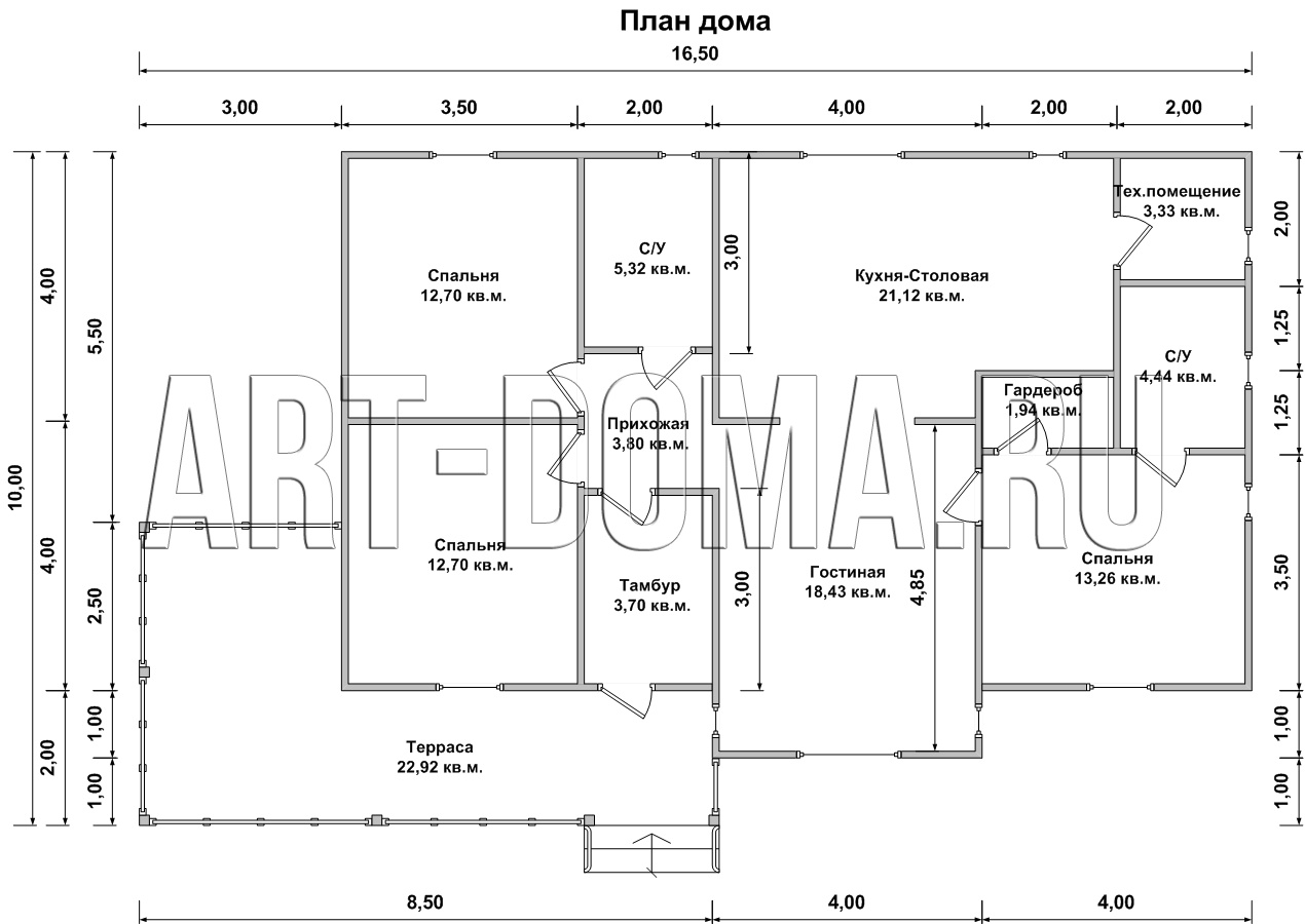 Дом из бруса 16,5х10 «Топаз» одноэтажный с террасой. Брусовый дом «Топаз» 16,5 на 10: проект