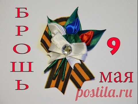 Брошь к 9 МАЯ/Канзаши/DIY-Своими руками
