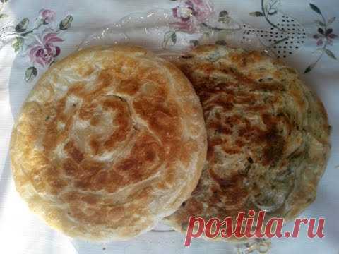 Катлама. Очень вкусная слоёная лепёшка с луком, зеленью и острым перцем