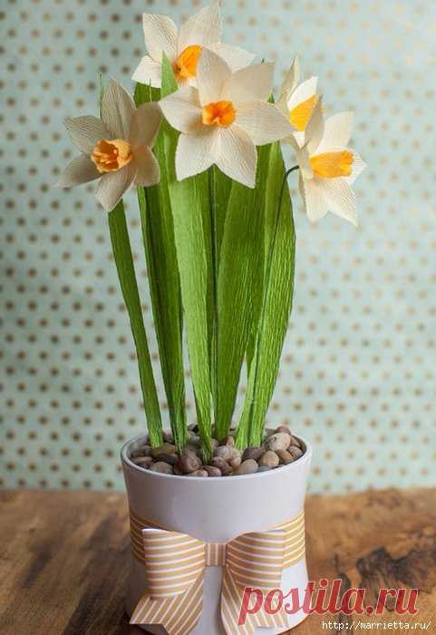 Весенние нарциссы из гофрированной бумаги. Мастер-класс