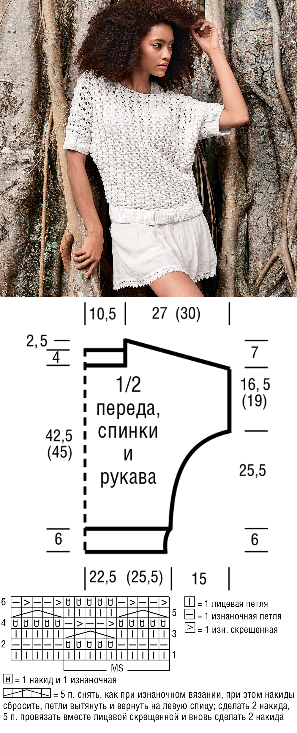 Свободный джемпер с сетчатым узором - схема вязания спицами. Вяжем Джемперы на Verena.ru